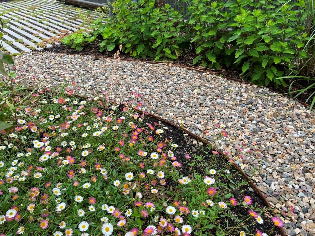 Een oprit van grind is waterdoorlatend, maar niet zo fijn om op te lopen of met de fiets over te gaan. Ook rolt er vaak grind de straat op. De toegepaste bestrating is stevig genoeg voor een auto, en is toch waterdoorlatend. De open delen kunnen dichtgroeien met lage plantjes, en waar veel gereden of gelopen wordt kan grind komen.